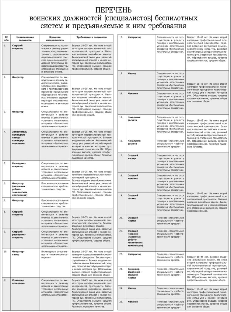 При отборе в новые войска в приоритете уверенные пользователи компьютера, геймеры, киберспортсмены, дронрейсеры. Приветствуется опыт работы в сфере IT, электроники, радиотехники. Возрастные ограничения – от 18 до 45 лет (для операторов FPV-дронов – до 35 лет). Категория годности – «А» или «Б».
